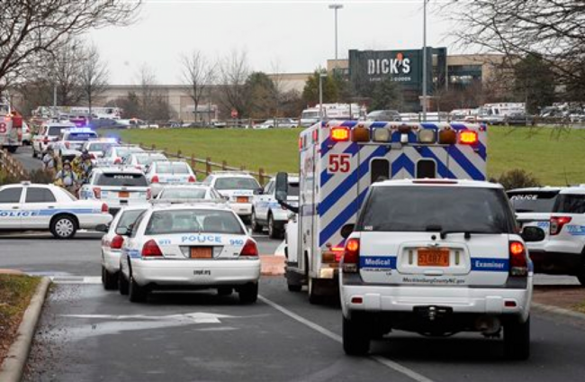 During the fight, a weapon was brandished and shots were fired about 2pm local time at Northlake Mall in Charlotte, Putney said. Shoppers who were crowding the mall for last-minute gifts hid in stores and locked themselves inside, officials said. Police could be seen blocking all entrances.