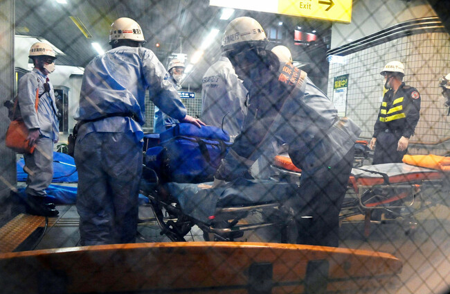 featureimage Rescuers carry an injured passenger on stretcher at Soshigaya Okura Station after stabbing on a commuter train in Tokyo. Kyodo / AP/PA Kyodo / AP/PA / AP/PA