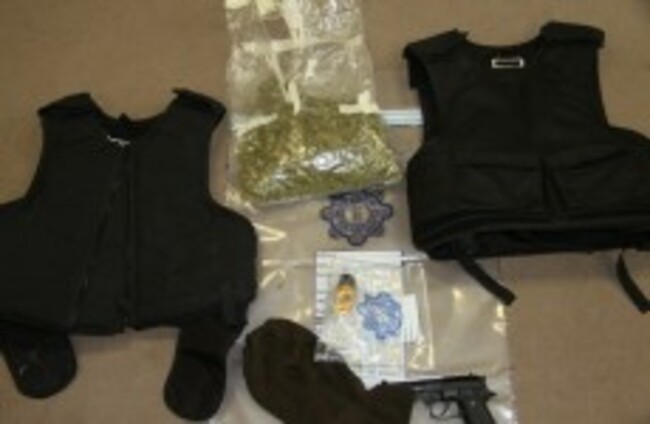 During the course of the search, cannabis herb with an estimated street value of €10,000 was seized, as well as two bullet-proof vests, an imitation handgun, gloves, a balaclava, and a quantity of pepper spray.