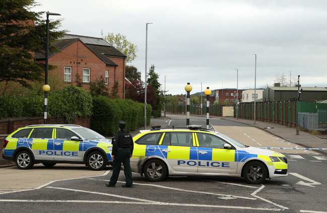 A PSNI officer on Ladas Drive in Belfast PA/Liam McBurney