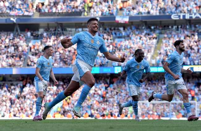 Manchester City's Rodri celebrates scoring their side's third goal of the game. Alamy Stock Photo