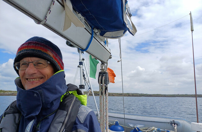 A family member of Conor’s said that he was last seen nearby Mac Dara’s Island wearing a Navy hat with a red band, a green sweater under black salopettes, and tan Dubarry sailing boots.