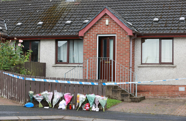 Flowers at the scene where the two-year-old child was found on Friday in Dungannon, Co Tyrone Liam McBurney via PA Images