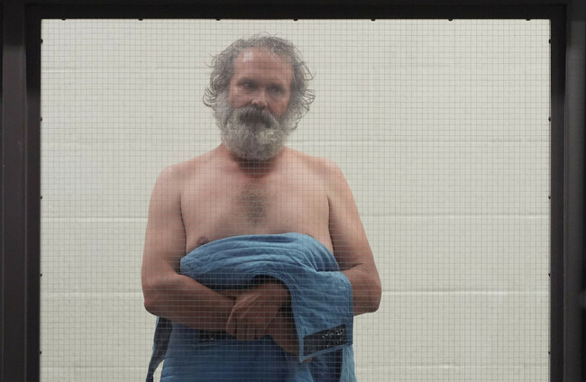 Jimmy Wayne Carwyle, 48, appeared shirtless and wrapped in a blanket when he appeared behind glass in a custody area of a Los Angeles courtroom. The Mississippi man did not enter a plea, or speak at all.