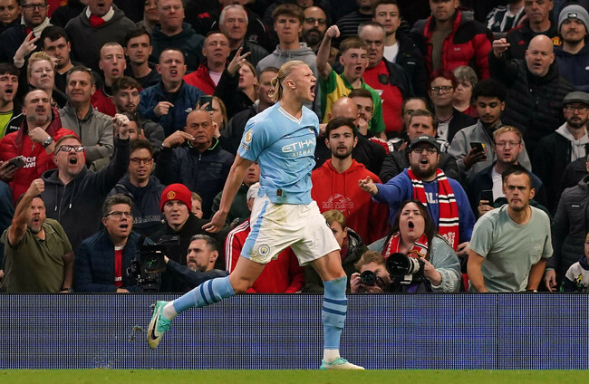 Erling Haaland nets a double with Phil Foden making it 3-0 at Old Trafford.