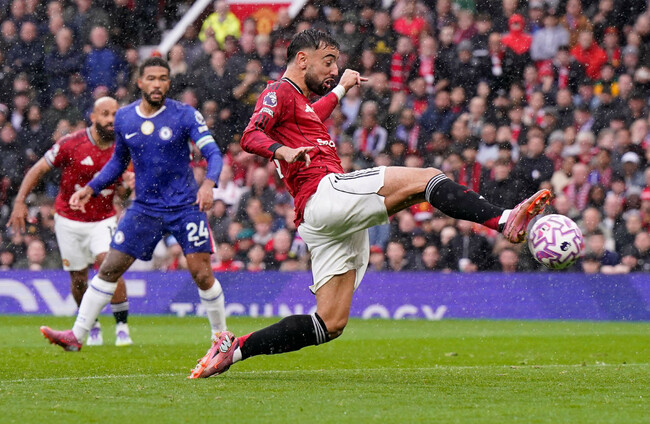 United went for the jugular and Mbeumo volleyed just over after Fernandes’s free-kick cannoned off the Chelsea wall.