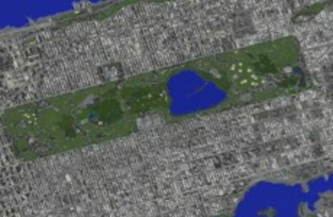 Mitchell’s system combines ”orthoimagery, bathyspheric, and elevation data from the USGS EROS service, and 3D buildings from Google’s 3D Warehouse” to create models. In order to to get the best results of Manhattan, a server cluster with 300 cores and 200 GB RAM would need a few hours to render the model.