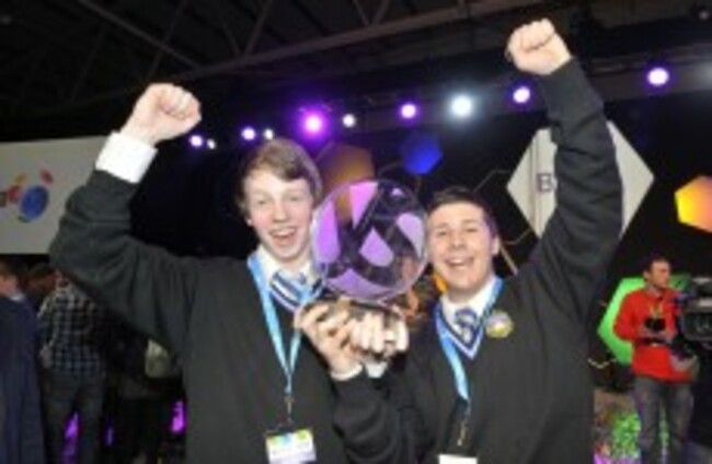 The boys share a cheque for €5,000 and a Waterford Crystal trophy, as well as the chance to represent Ireland at the 24th EU Young Scientist competition later this year.