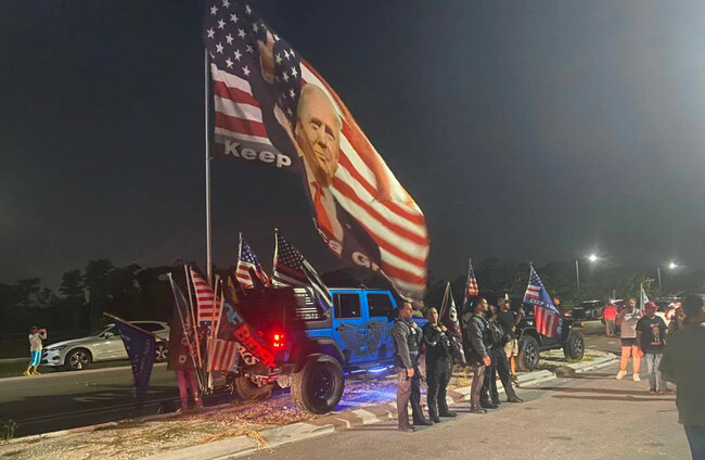 Police standby at the approach to Mar-a-Lago in Palm Beach on Monday night as Trump supporters gather in the area. Nicholas Nehamas via PA Images