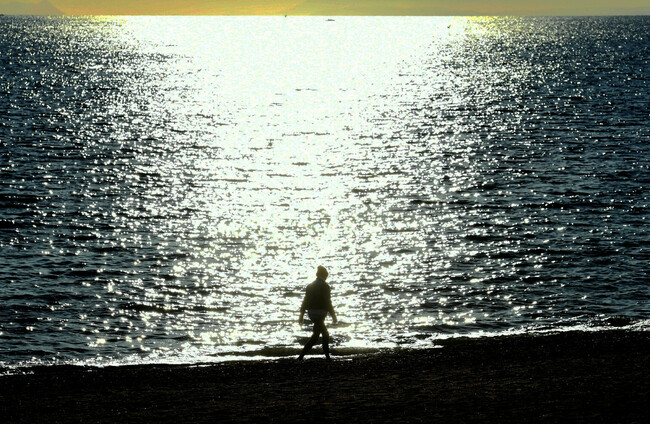 A woman walks on the beach in Marbella, Andalusia. Xinhua News Agency/PA Images