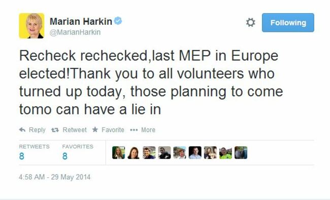 Gallagher, who was also bidding to keep his Brussels seat, had finished just 275 votes behind Harkin after the last count.