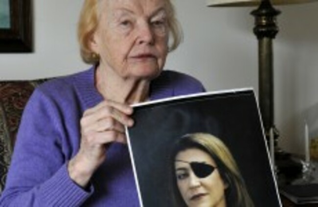Marie Colvin's mother Rosemarie Colvin poses with her portrait today. AP Photo/Kathy Kmonicek/PA Images
