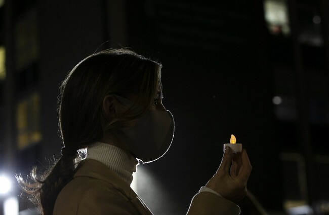TD Holly Cairns holds a candle whilst attending the vigil. Sam Boal via RollingNews.ie