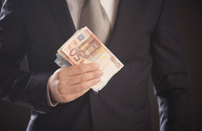 As a Friday treat, Mr Moneybags takes a bag full of money to let his workers have a lucky dip. He explains that there is a mix of €5, €10 and €20 notes in the bag and everyone could pull one note out.
