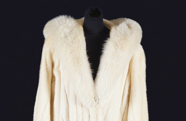 Lot 885 (pictured) is a Christian Dior full-length white mink coat is trimmed with Arctic fox fur and lined throughout with silk.