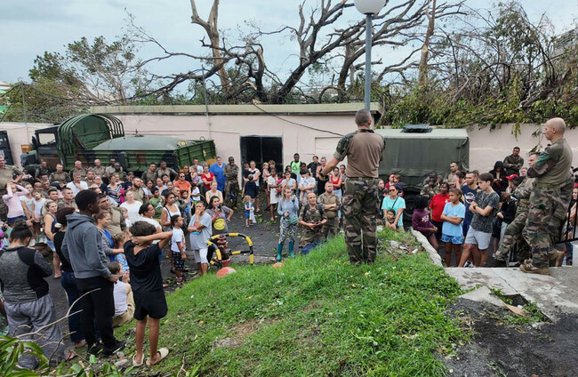 Soldiers addressing the population in the French territory of Mayotte in the Indian Ocean, after Cyclone Chido caused extensive damage with reports of several fatalities. Etat Major des Armees via AP/Alamy Stock Photo