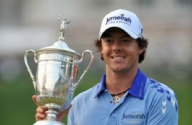 Rory McIlroy shows off the trophy after winning the U.S. Open Championship. Larry French/AP/Press Association Images