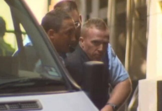 Adrian Bayley being taken away in handcuffs by Australian police. (Pic: ABC News)