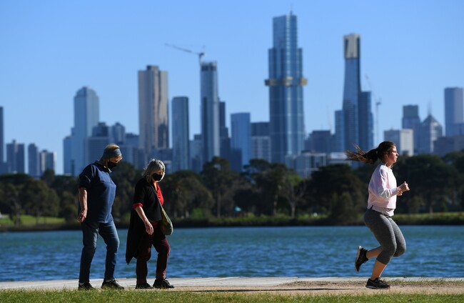 People are seen exercising along Albert Park Lake in Melbourne James Ross/AAP via PA Images