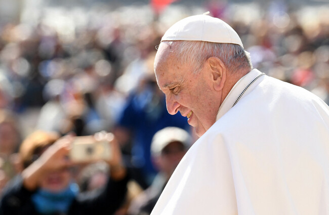 Pope Francis attends the weekly general audience in Saint Peter's square at the Vatican on 8 May Vandeville Eric/ABACA