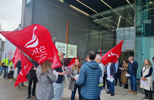 The Unite members at the company held a protest outside Merative’s offices in Dublin on Thursday afternoon.