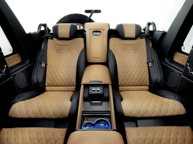 Opening the roof allows everyone to see the exquisite high-grade upholstery with diamond stitching, which comes in two-tone and is available in four trim colours. Of course you can match the colour of the fabric roof to the interior or exterior, and the exterior comes in a choice of four paint finishes. Although whatever combo you choose the G 650 will still look gaudy and tasteless.