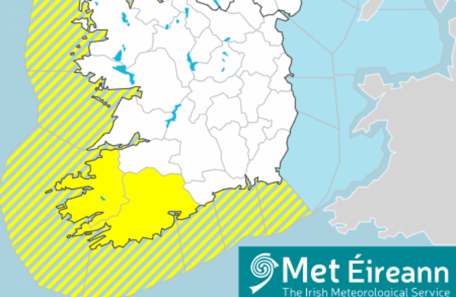 Met Éireann said there will be spells of heavy rain for Kerry and west Cork, with localised flooding possible.