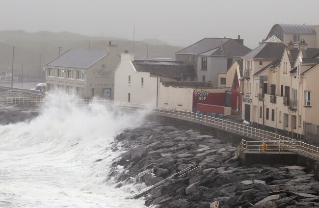 Waves crash agains the sea wall in Lahinch, County Clare. PA Wire/PA Images