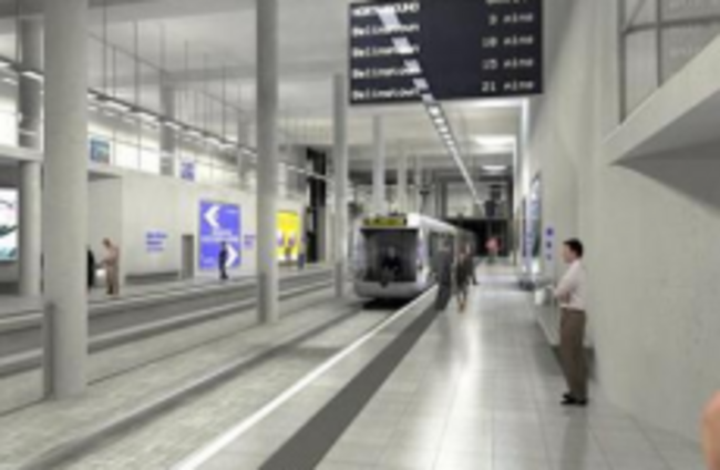A stop would have been placed within walking distance of both terminals in the airport and trains would have arrived every two minutes.