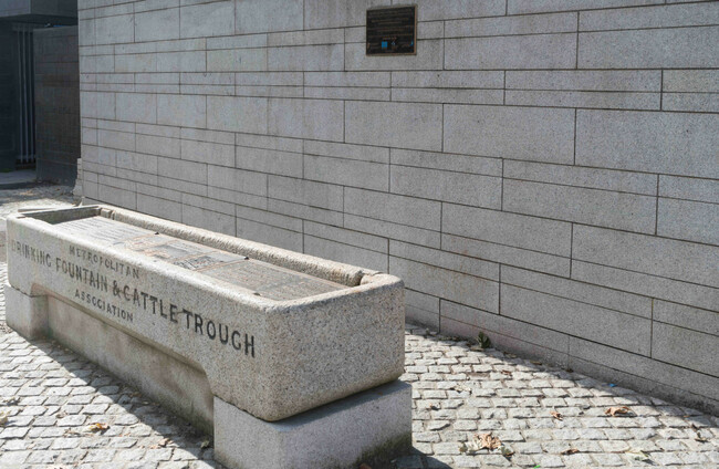 Look closer, and you’ll spot it’s less of a bathing vessel and more of a trough. Once a drinking spot for animals, the long stone structure is still branded with the inscription “Metropolitan Drinking Fountain and Cattle Trough Association”.
