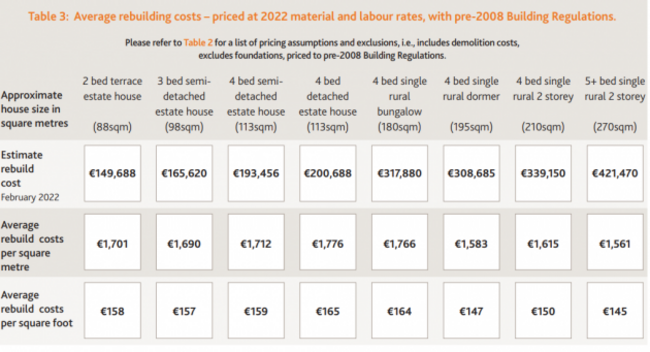 The report puts rebuild costs at between €150,000 and €421,000 depending on the size and location of the house.