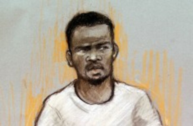 A courtroom sketch by artist Elizabeth Cook shows Michael Adebolajo at his first court appearance on Monday Elizabeth Cook/PA Wire