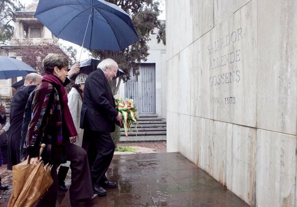 PRESIDENT MICHAEL D Higgins has visited the grave of deposed Chilean leader Salvador Allende on the fourth day of his visit to South America.