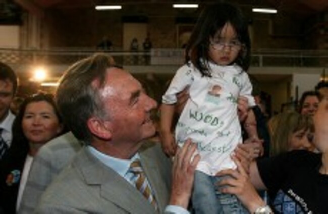 Michael Woods, pictured with granddaughter Mia (3), after winning his tenth consecutive term in Dáil Éireann in 2007. Julien Behal/PA Archive