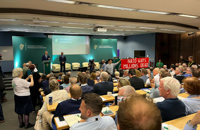 PROTESTERS HAVE HALTED the start of the consultative forum on international security policy in Cork, shouting anti-NATO slogans during Tánaiste and Minister for Defence and Foreign Affairs Micheál Martin’s opening speech.
