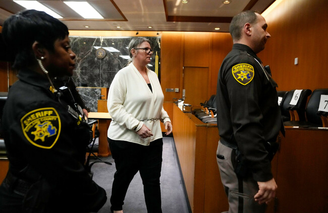 Jennifer Crumbley is escorted out of court in Pontiac, Michigan at an earlier hearing PA