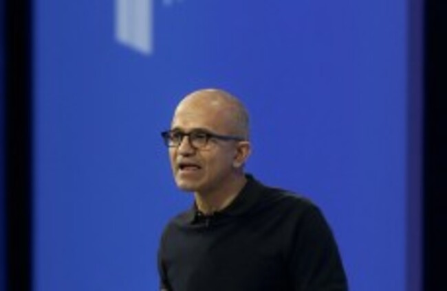 Microsoft CEO Satya Nadella speaking about Windows 10 at the company's annual Build conference. AP Photo/Jeff Chiu