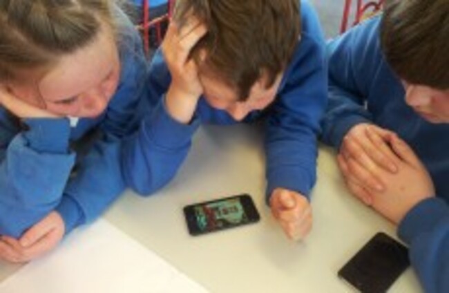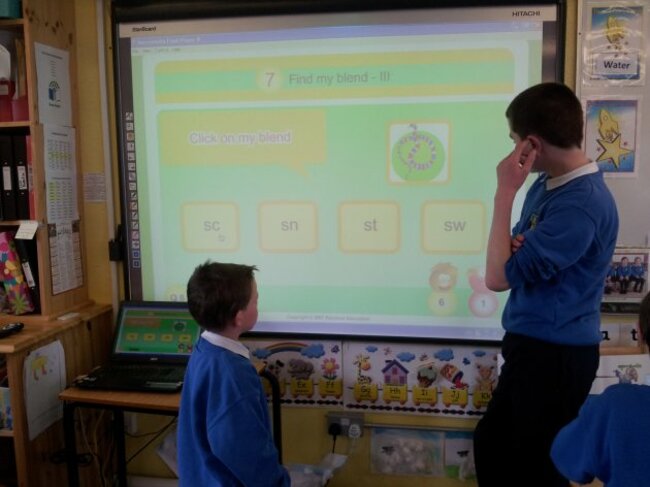 Sixth class children helping junior infants develop early reading skills on iPods. Brian Boyle via Scoil Mhichil Naofa, Galmoy Co. Kilkenny