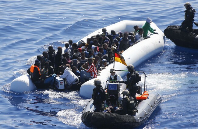 Spain Migrants A rubber dingy full of migrants floats in the sea between Morocco and Spain in 2012. Marcos Moreno / AP/PA Marcos Moreno / AP/PA / AP/PA