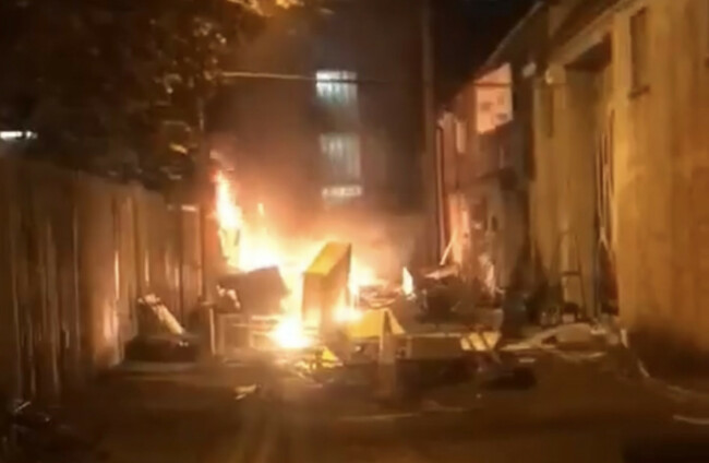 Footage of several men dissembling a makeshift shelter at roughly 10.45pm has been shared widely online, as has footage of tents and furniture on fire.