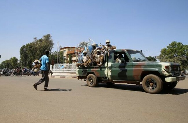 Soldiers on patrol in Ouagadougou, Burkina Faso. LEGNAN KOULA/EPA-EFE/Shutterstock