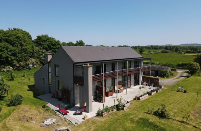 Architecturally-designed in collaboration with the homeowner, the build pays homage to traditional Irish long house designs. Each room has half-door access that leads to the south-facing outdoor space.