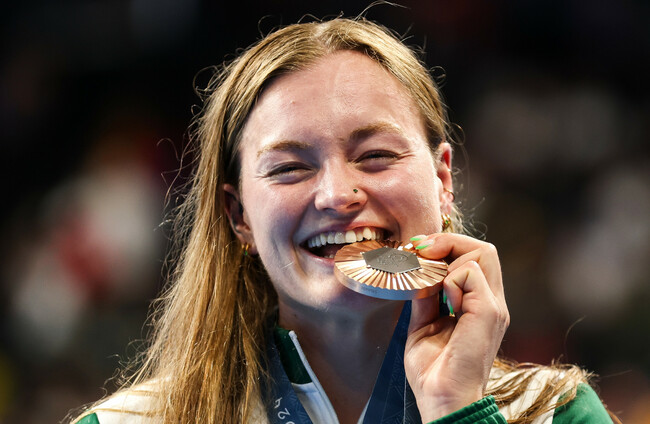 McSharry won bronze in the women’s 100m breaststroke at the La Defense Arena, finishing just 0.01 seconds clear of fourth place.