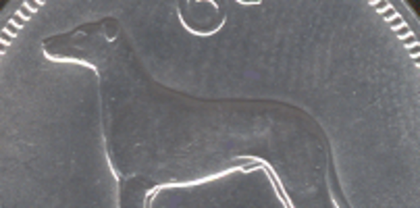 What type of dog was on the Irish sixpence coin?