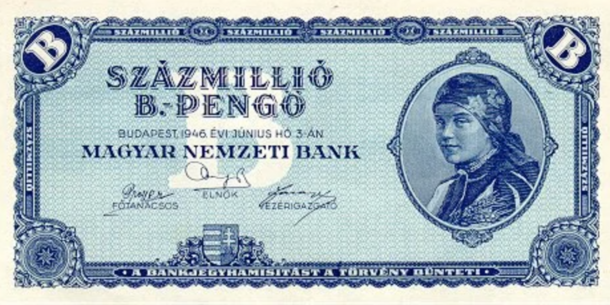 The Hungarian pengő was another currency to suffer from an awful bout of hyperinflation, resulting in the highest denominated banknote ever. How much was it worth?