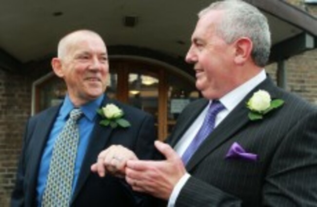 Nicholas Nelson and Thomas Cahalan entered a civil partnership on 5 April last year - the second male couple to do so in Ireland Leon Farrell/Photocall Ireland