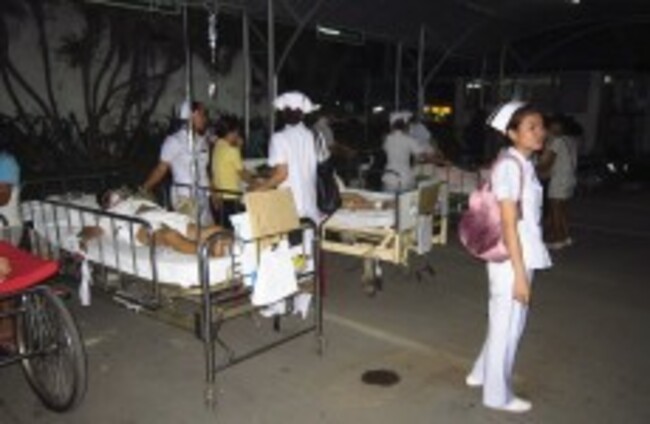 Patients at Chiang Rai hospital are treated on the ground after they were evacuated from a hospital building following an earthquake in Chiang Rai province, northern Thailand Thursday, 24 March AP Photo via AP Photo