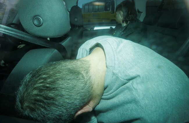 Connor Pollock arriving at Downpatrick Magistrates’ Court where he has been charged following a cross-border police investigation into right-wing extremism. PA