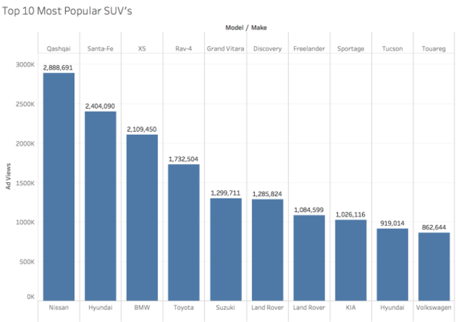If you are thinking of selling an SUV, this list gives an indication of what makes and models people are searching for and how in-demand your car might be.
