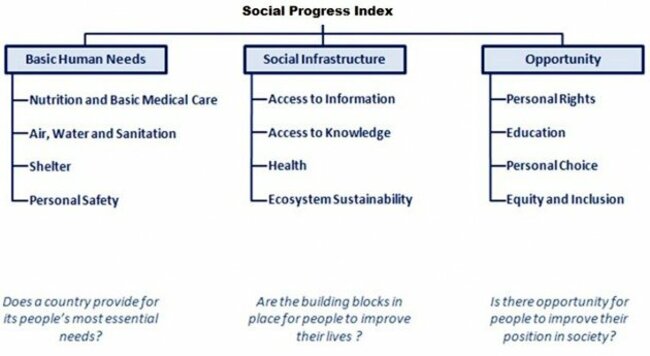 THE SOCIAL PROGRESS INDEX is a new metric that measures progress through fulfillment of basic human needs rather than traditional indicators of economic growth.